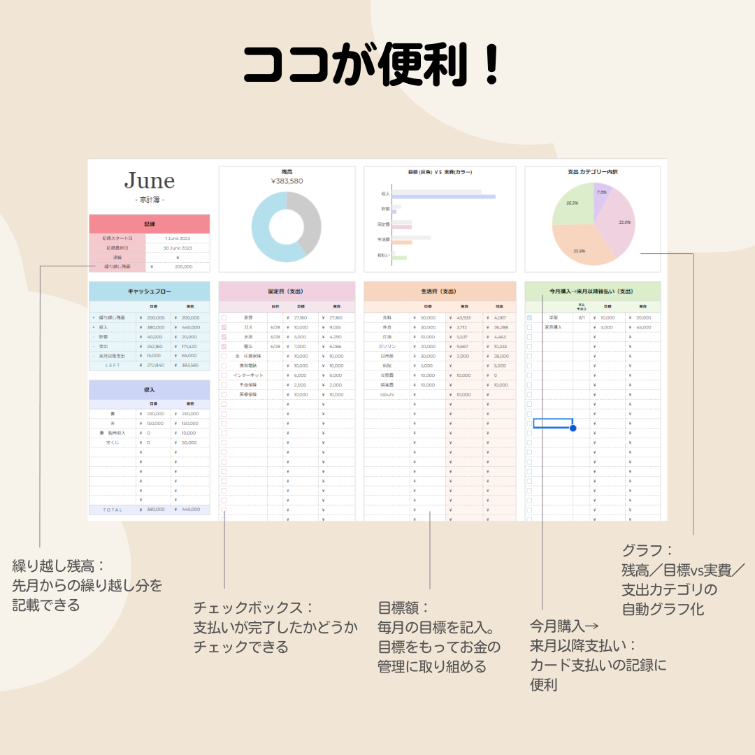 スプレッドシートテンプレート かわいい家計簿 - デジタルプランナー屋さん Amplixyminne byGMOペパボ国内最大級のハンドメイド・手作り通販サイト。