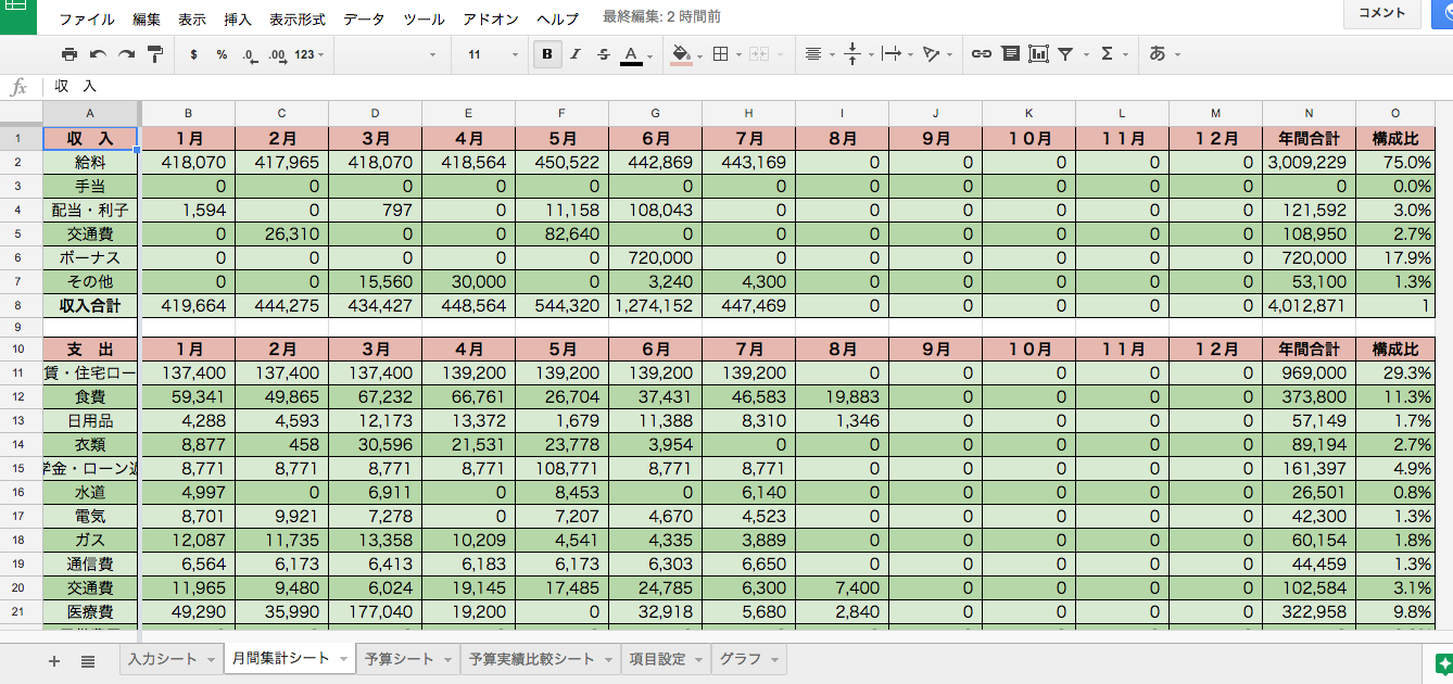 Googleスプレッドシートで家計簿を自作。決めたルールを紹介。 - 家でぐだぐだ3人暮らし。
