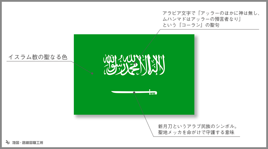 サウジアラビア国旗の由来・意味や特徴をイラスト解説。