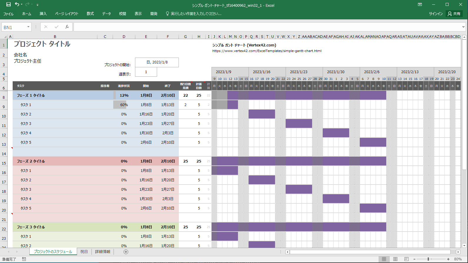 無料ダウンロード 日単位ガントチャートExcelテンプレート2025年祝日対応・入力補助・進捗管理付きPlusプロジェクトマネージャーオフィシャルページ。