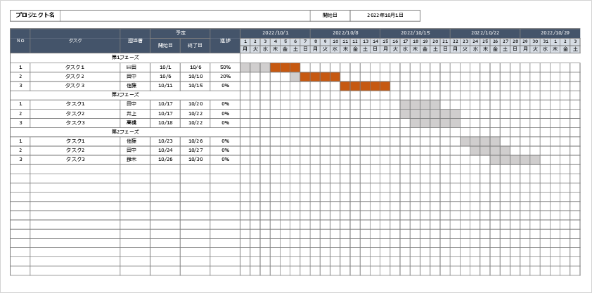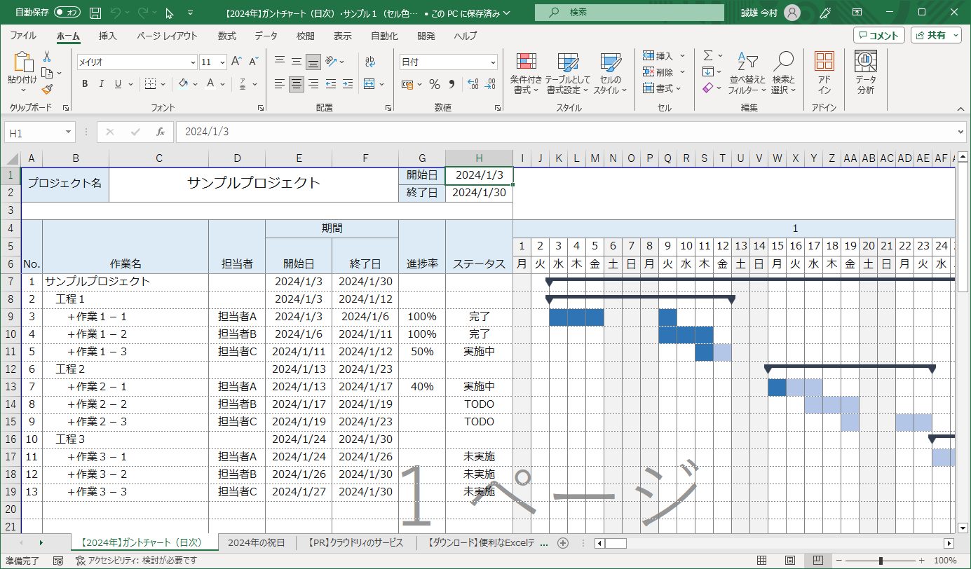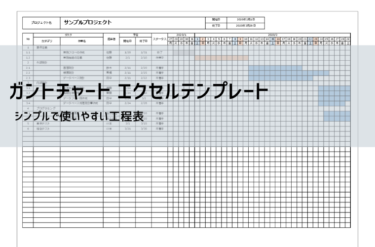 ガントチャート 工程表 の無料エクセルテンプレートOffice Hack。