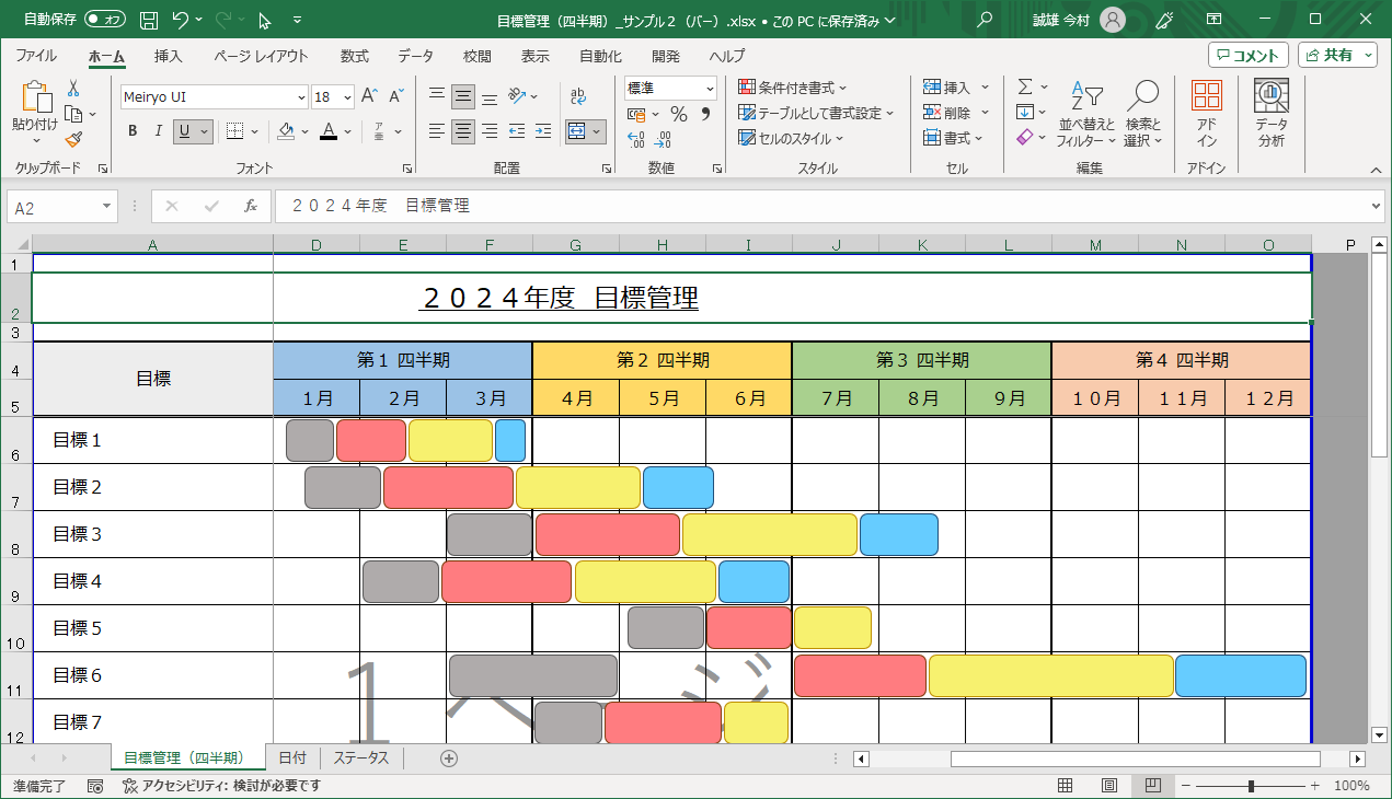 ガントチャート 月単位・四半期 無料Excelテンプレート目標管理・入力補助・サンプル付き - BIZ-NEXTテンプレート。