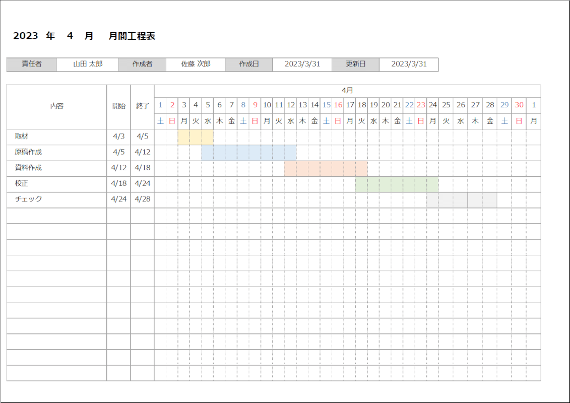 無料Excelテンプレート ガントチャート 月間・四半期 ・シンプル・サンプル付きプラスブログ。