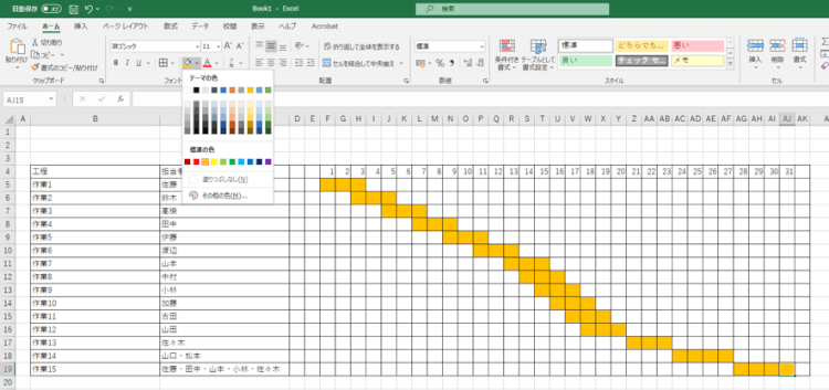 仕事を管理しやすいガントチャートの作り方エクセルで初心者でも簡単。