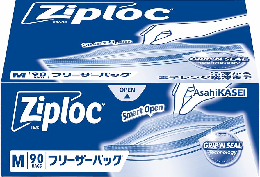 Amazon大容量 ジップロック フリーザーバッグ M 90枚入Ziploc保存用バッグ・ポリ袋。