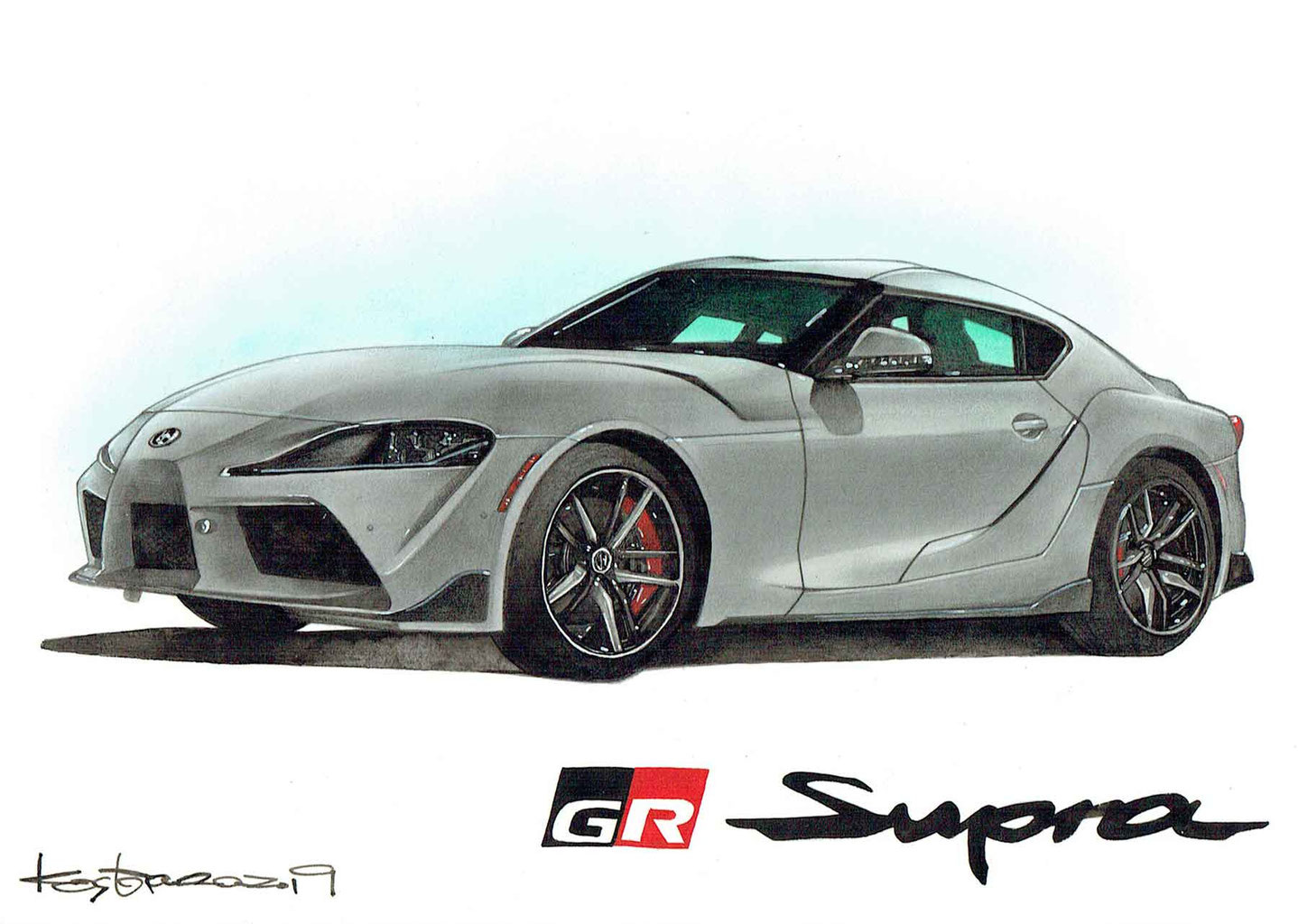 ☆鉛筆画 イラスト 旧車 トヨタ スープラ A70 A4額付。