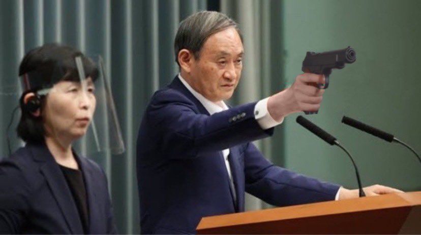 菅総理の銃を持ったコラ画像がカッコよすぎると話題にwww。