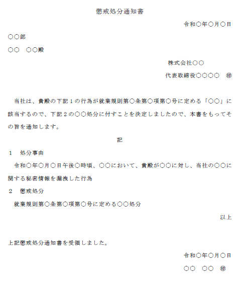 懲戒処分通知書の書き方と通知方法の注意点を徹底解説 - 企業経営者のための法律相談サイト大阪 なんば・心斎橋での弁護士相談。
