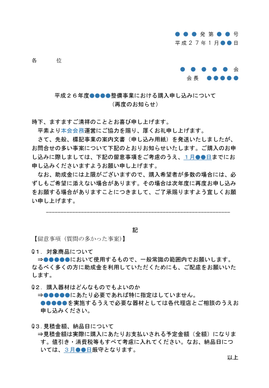 例文・雛形 『消防設備点検のお知らせ』のテンプレートマンション管理の教科書。