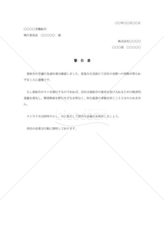 警告状の書き方・文例書式の例文書き方コラムbizocean ビズオーシャン ジャーナル。
