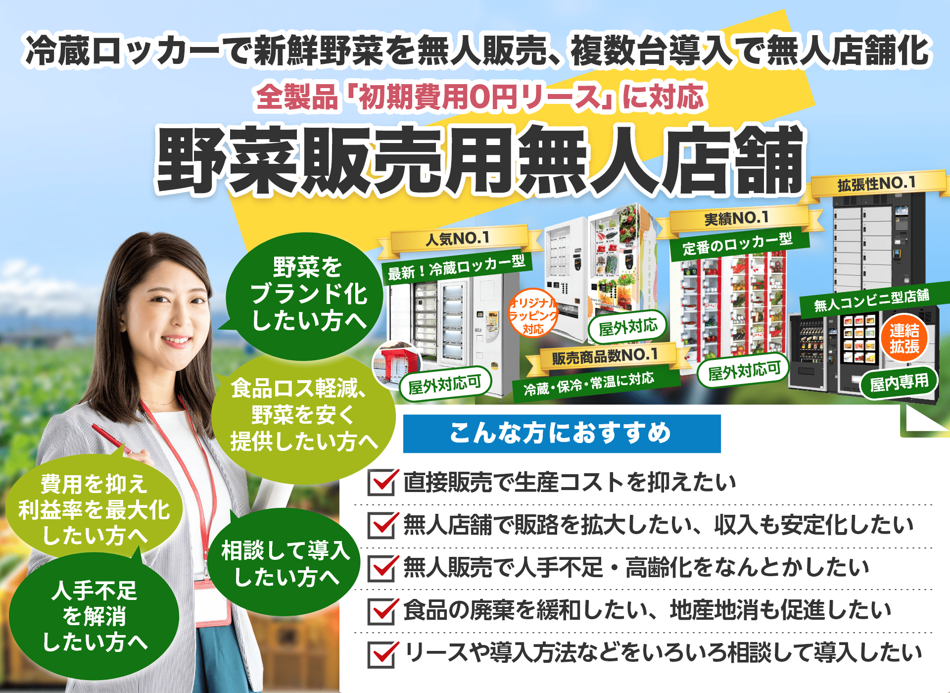 野菜の無人販売所が全国で需要拡大で増加!無人店舗JP。