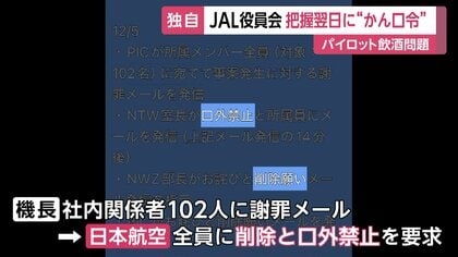 独自 JAL内部資料に「箝口令敷く」乗務前パイロット大量飲酒問題で国への報告「対象外」と社長も了承「隠す意図はありませんでした」。
