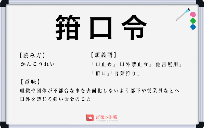 箝口令とは? 「箝口令を敷く」の意味って? 緘口令との違い・英語表現も紹介 - ライブドアニュース。