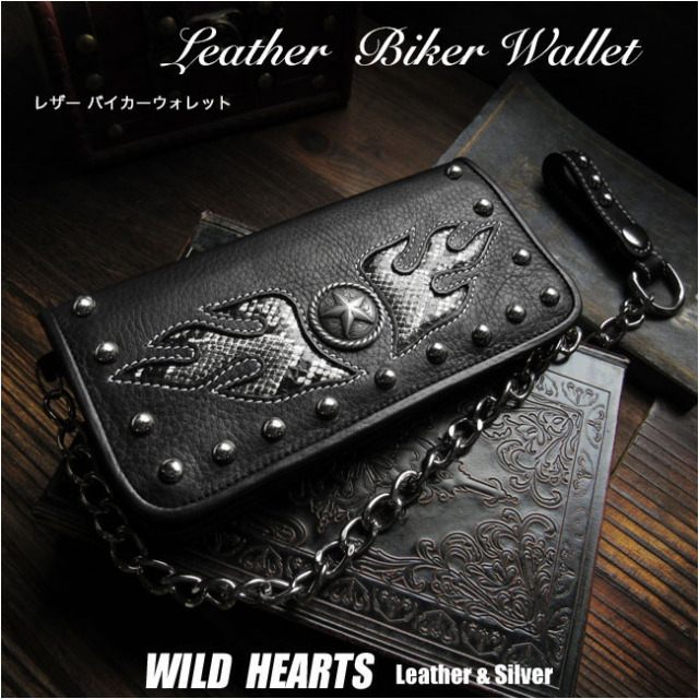 トラッカーズ ウォレット バイカーズ ライダーズ ウォレット 二つ折り財布 ウォレット チェーン付き ブラック ハーレー スタイル ツーリング 本革馬革 レザー Leather Biker Wallet Trucker WILD HEARTS Leather&SilverIDlw1379 za025。