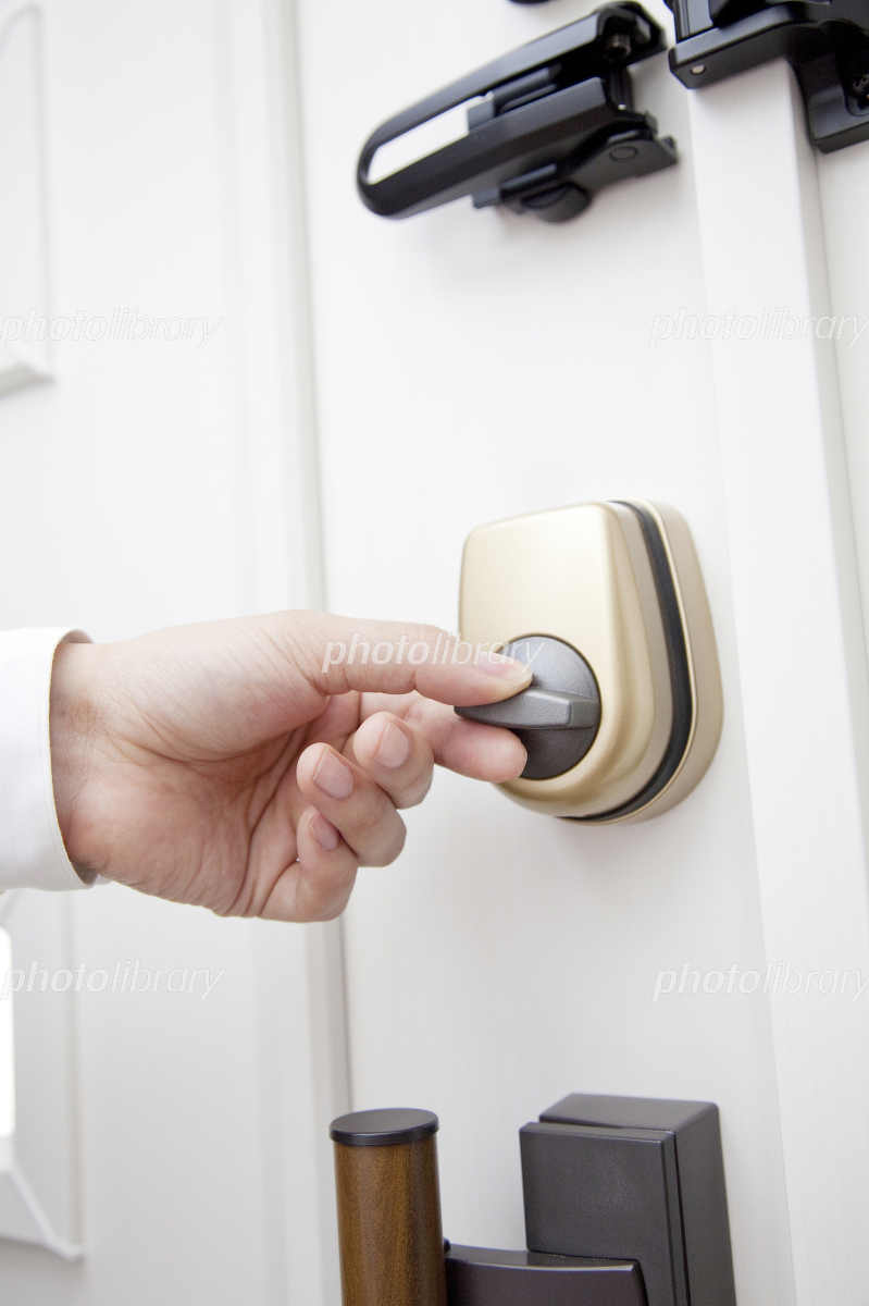 玄関の鍵を閉める女性の手元 10179015050 の写真・イラスト素材アマナイメージズ。