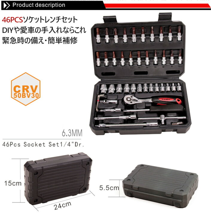 ソケットレンチセット 工具セット 46点 ツールセット DIYセット 作業セット 道具箱 日曜大工 ツールボックス 簡単補修 車の手入れツールセット 修理 整備 工具箱 収納 保管 整理 持ち運び メンテナンス メカニック 工具 工具BOX 工具入れ 工具ケース 自転車 バイク 整理。