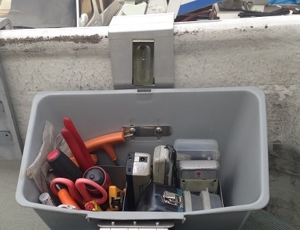 中古高所作業車アイチSH09Aの左右の工具箱の修理依頼をいただきました。底が抜けているので、修理しました。下の部分を切断し、新しく貼り直します。高所作業車基礎知識スタッフBLOG大阪の再生中古トラック専門店販売・買取トラック123。