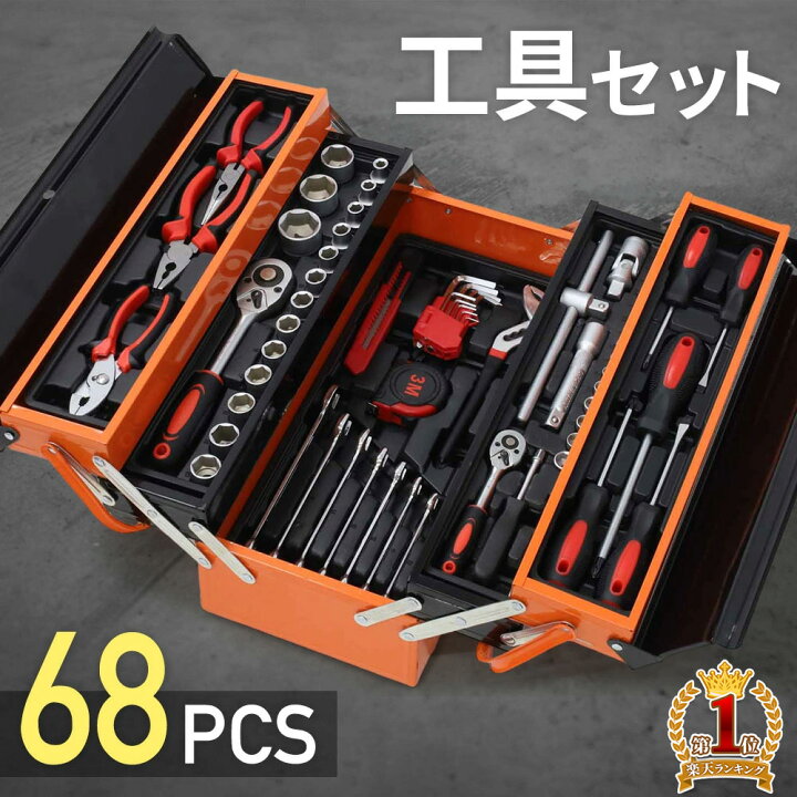 50人に1人当たる!全品半額のチャンス★9〜10日限定工具セット 家庭用 68点 車 スパナ レンチ プロ 工具箱 おしゃれ 工具 ツールセット整備工具セット 整備工具 ツールボックス ツールチェスト メンテナンス 作業道具 車整備 バイク整備 ソケット ドライバー レンチ。