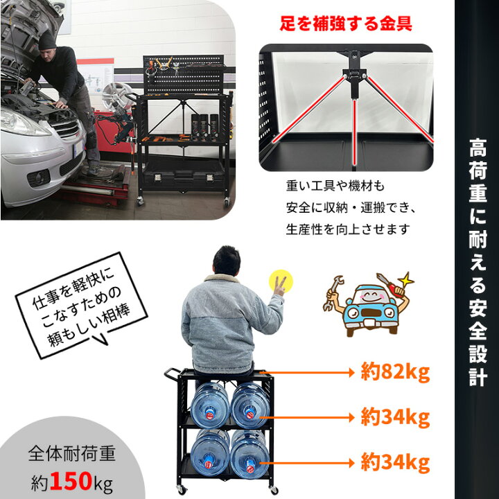 楽天市場P5倍日10%OFF RAKU ツールカート 工具ワゴン 工具台車 工具カート 3段 折り畳み式 ツール収納ラック折りたたみ式ツールカート 工具収納カート 作業用ワゴン 工具整理カート 360°回転キャスター メッシュパネル付き ストッパー付き DIY耐荷重150kg 工具収納。
