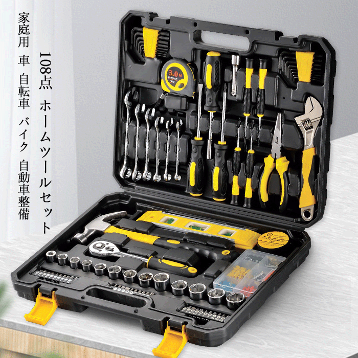 作業工具セッ 108点 ホームツールセット 工具セット 家庭用 車 自転車 バイク 自動車。