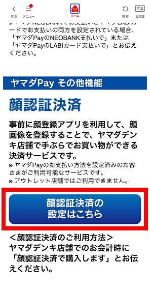 キャッシュレス決済ヤマダPay 顔認証決済の設定ヤマダデンキ YAMADA DENKI Co.,LTD。