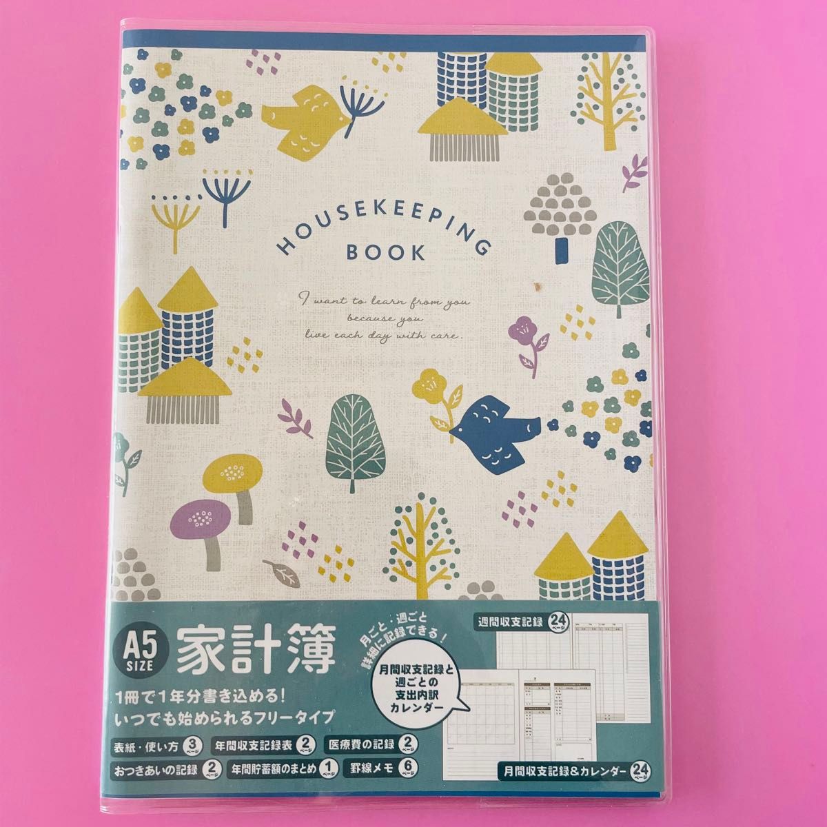 家計簿 手帳 スケジュール帳 ノート 手書き 袋分け シンプル かわいい マンスリー A5 ノーマネーデー シール 薄型 日付なしタイプ 初心者始めやすい FP監修 節約 倹約 献立表 記録 12ヶ月 レシート収納 封筒 ポケット カバー付き 支出管理 家計管理 おしゃれ コンパクト。