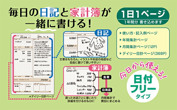 日記もかける 家計簿m ダイアリー 日記帳 かわいい 家計簿付き スケジュール帳 手書き 簡単 お小遣い帳 節約 B6 ギフト プレゼントおもしろ 雑貨メ 直営店舗LINEブランドカタログ。