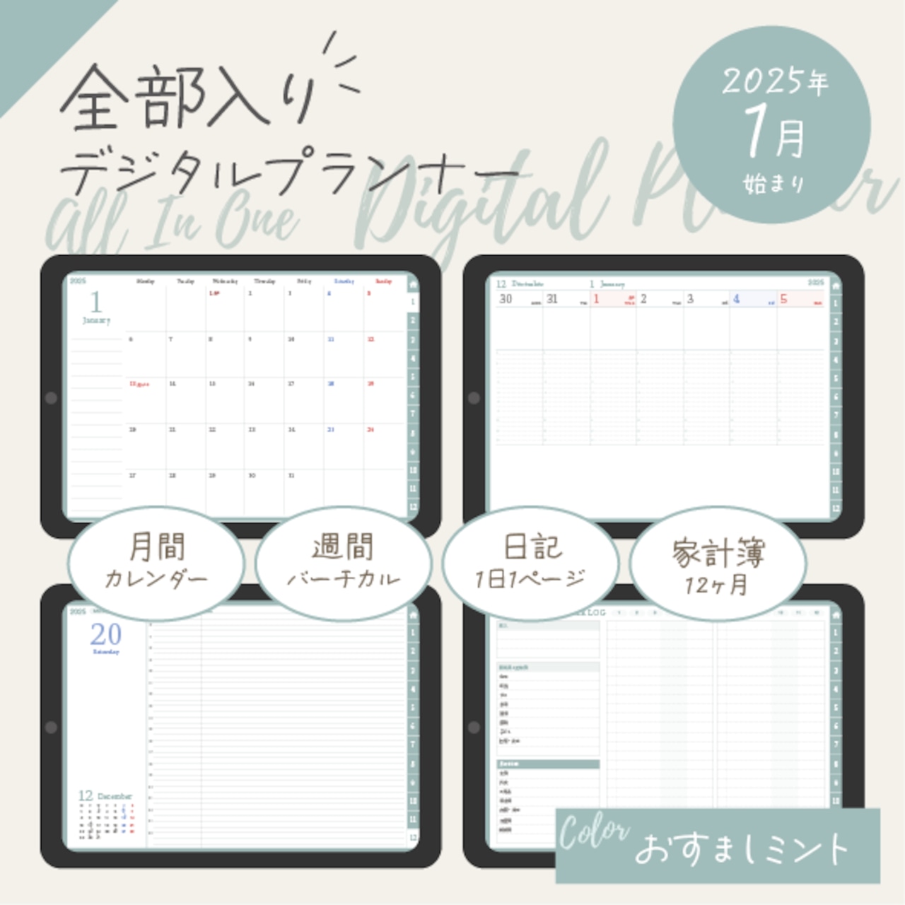 データ販売>2024年スケジュール管理・日記・家計簿を1冊でまとめて管理!全部入りデジタル手帳 手帳 DESIGN branch M note 通販16839894Creema クリーマ。