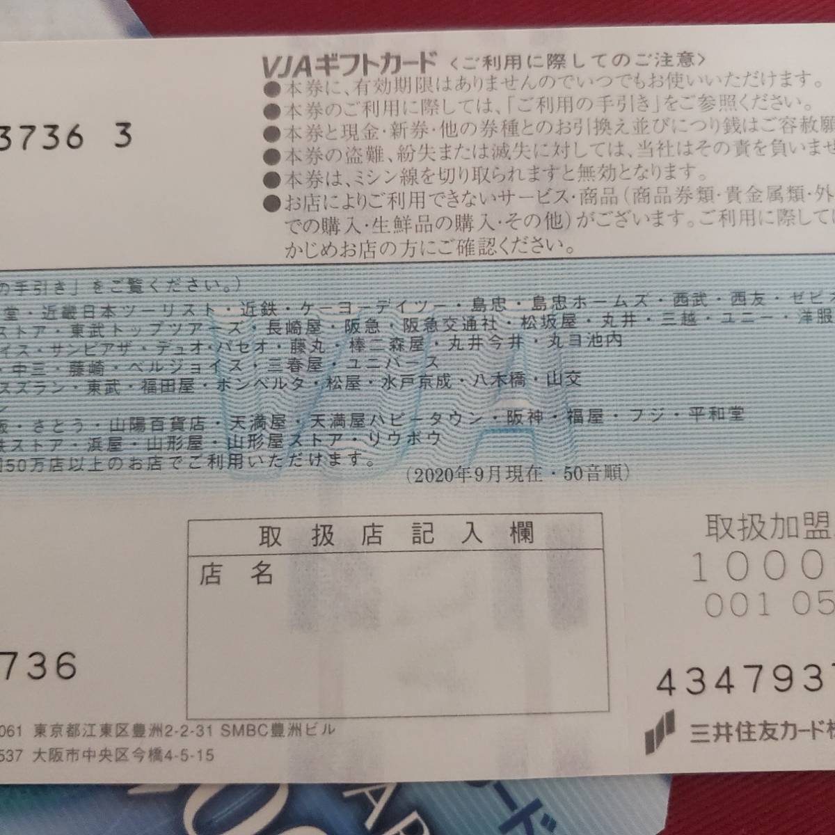 VJA GIFT CARD 三井住友カード ギフト 商品券1,000円分をまとめてお買い取りいたしました♪ - リサイクル&買取専門のリサイクルマート。