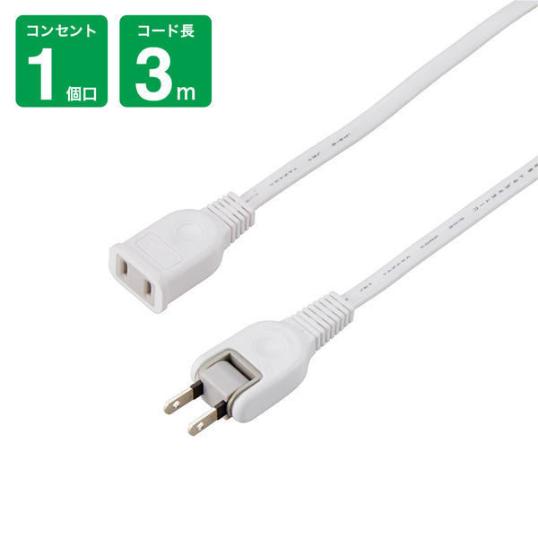 LPE-110N W延長ケーブル 延長コード 電源タップ 1個口 スイッチなし 熱に強い ELPA プラグ形状2P ホワイト色 -通販モノタロウ。
