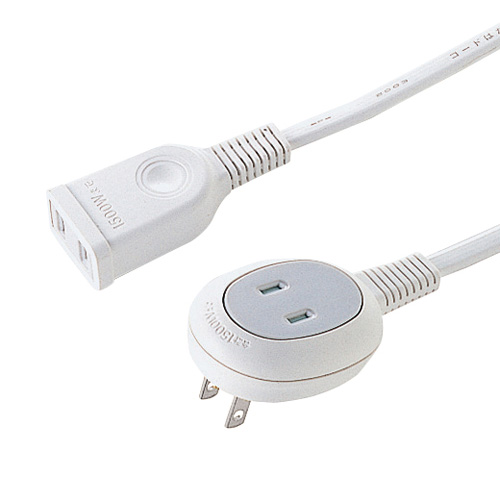 TAP-B8-5K プラス1個口延長コード 2P・1個口+1個口・5m・ホワイト延長コード に差込口が1個プラスで無駄なく使えて便利。2P・1個口+1個口・5m。サンワサプライ株式会社。