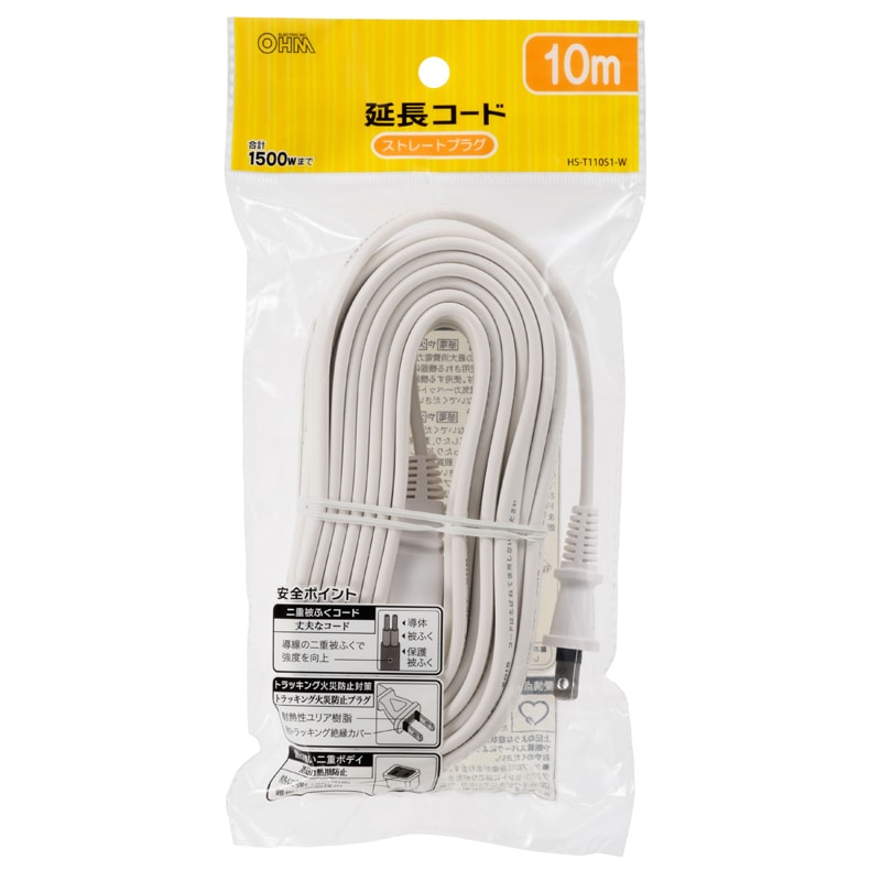 延長コード 1個口 1m ストレートプラグ ホワイトHS-T11EDLP22 00-1555通販ならオーム電機ダイレクト。