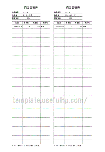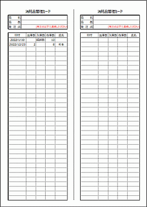 消耗品管理カード:棚に置くカードと管理表のテンプレートを無料ダウンロード - 登録不要のフリーテンプレート。