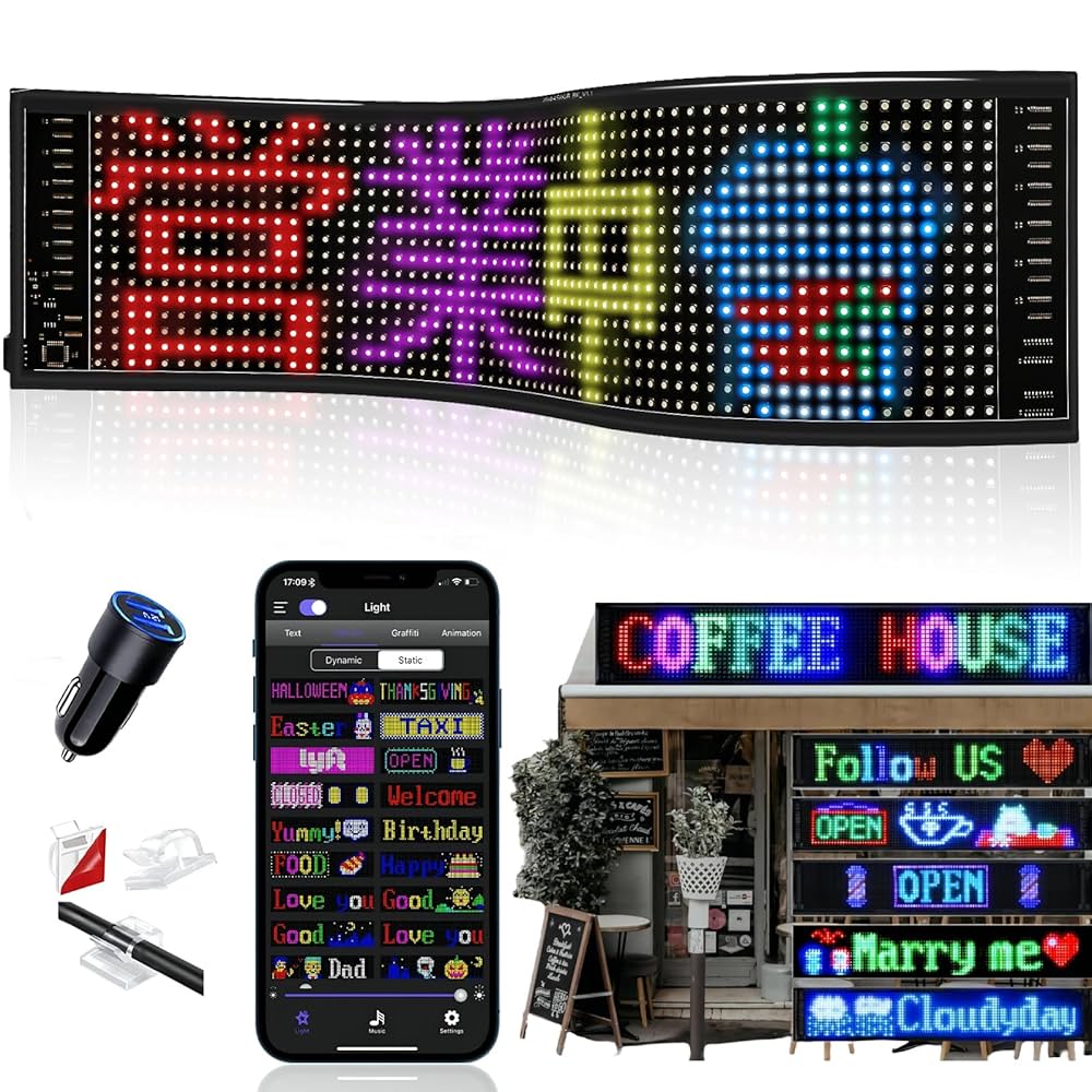 AmazonJDVOOTD LED電光掲示板 自由編集可能 画像可能 200文字入力可能日本語説明書付き アプリ付き 操作も簡単小型LEDサインボード 13モード 折りたたみ式 文字 絵 音楽リズム表示可能 LEDディスプレイ 屋台 バー 居酒屋 車 お店看板37 X9.2CM店舗看板。