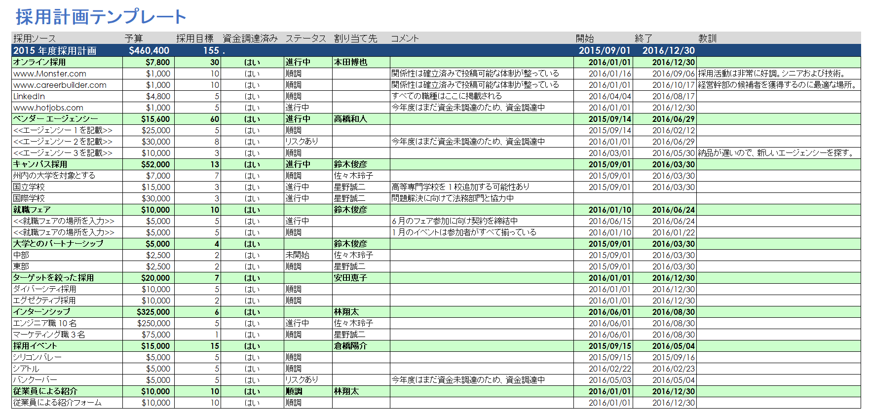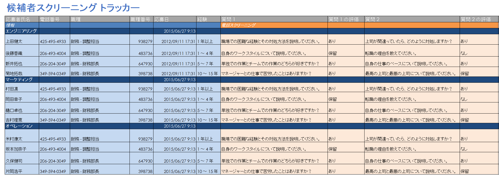 人事管理用無料Excelテンプレート。