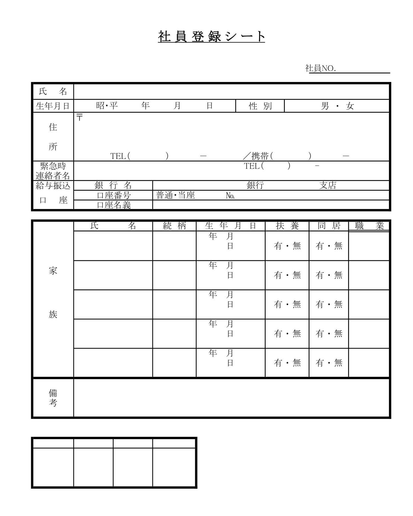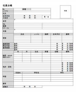 社員登録シートの書式テンプレート Excel・エクセルテンプレート・フリーBiz。