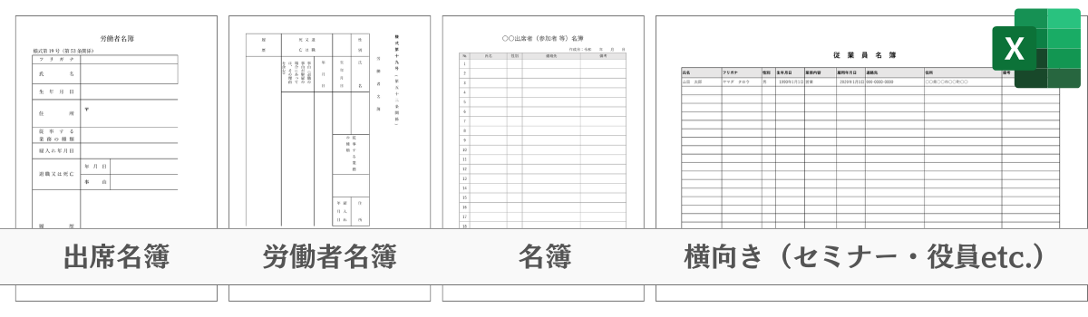 すぐに使える名簿テンプレート Excel シンプル 労働者名簿 役員名簿 セミナー名簿 顧客名簿 etc.ビズ研。