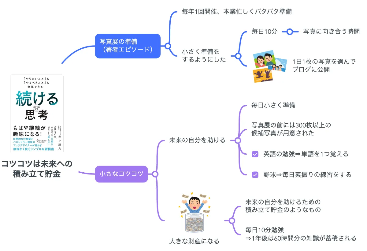 解説マップ コツコツは未来への積み立て貯金 続ける思考公式 MindMeister マインドマイスター。