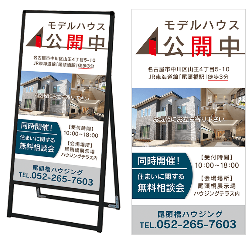 A型看板 不動産会社様の現地見学会ご案内用スタンド看板の製作事例をご紹介します。 - 看板王国看板王国。