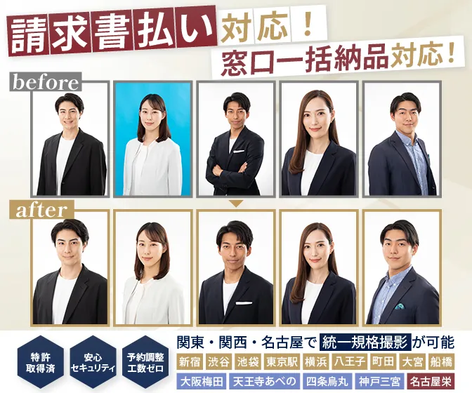 ビジネスプロフィール横浜の証明写真全額返金保証!就活・転職・エアライン系の成功率を上げるならスタジオオムザップへ。