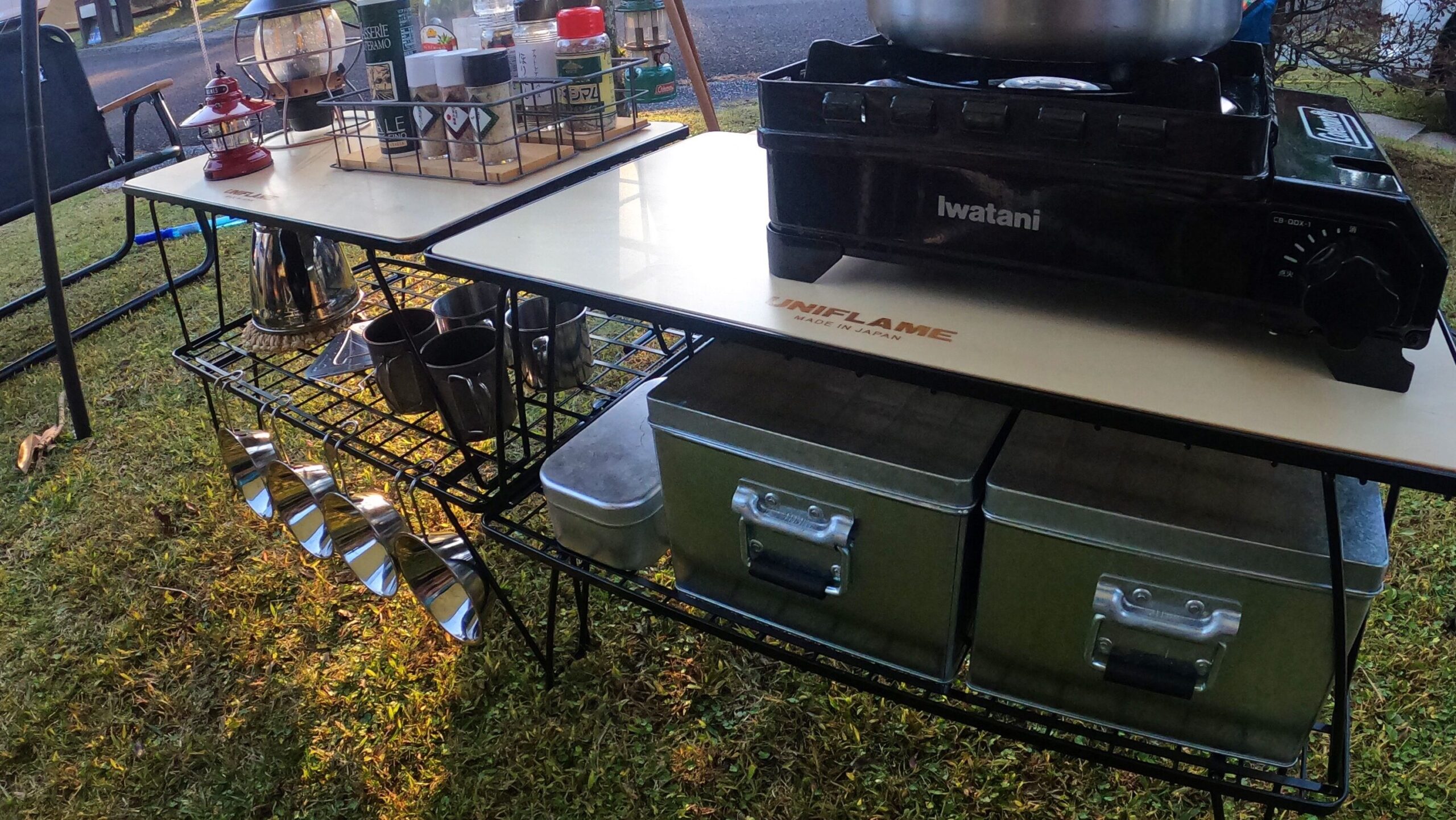 ユニフレームフィールドラック テーブルやおしゃれな棚として使えるおすすめキャンプギア。