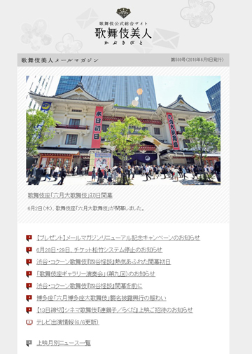 23日締切 メールマガジンリニューアル記念プレゼントキャンペーンのお知らせ歌舞伎美人。