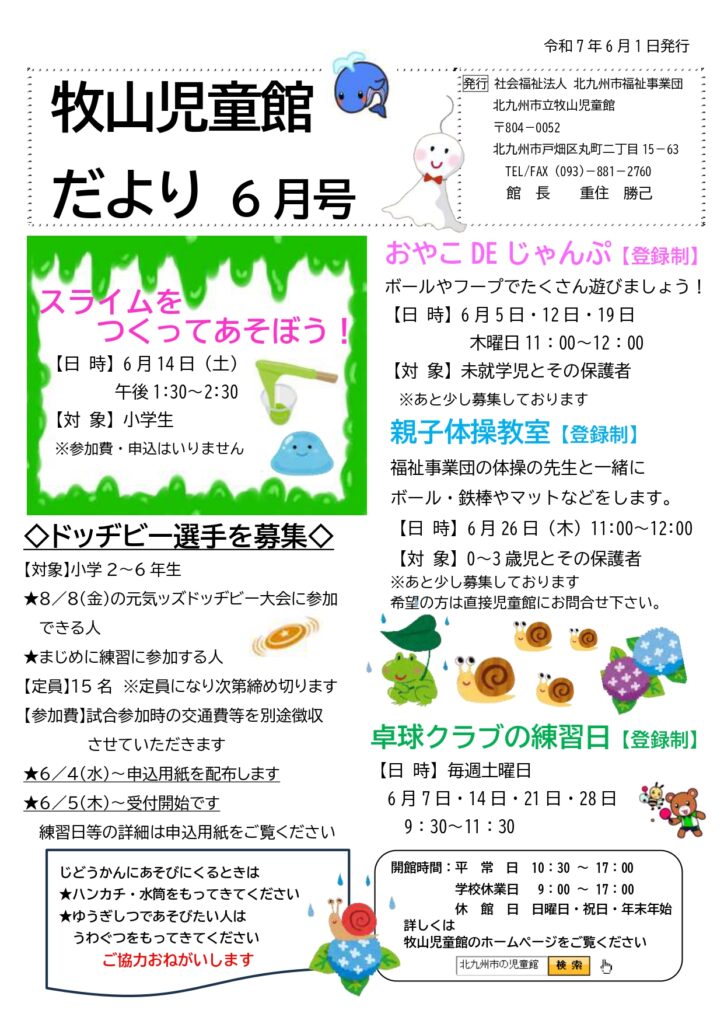 牧山児童館だより6月号北九州市の児童館・放課後児童クラブ 北九州市福祉事業団。