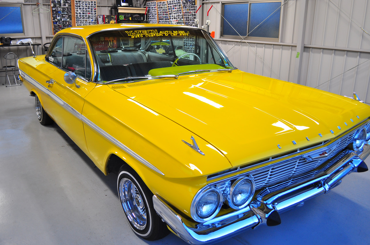 シボレー カマロを赤からレモンピールに全塗装をしました。全塗装専門工場ボーラーズ。