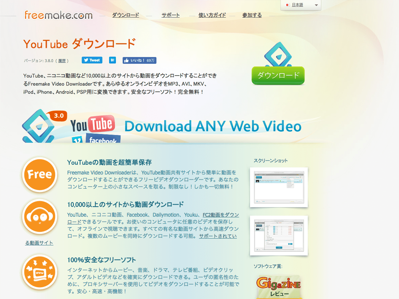 YouTube ダウンロード動画 - Freemake Video Downloader ユーチューブダウンローダーソフトDownload。