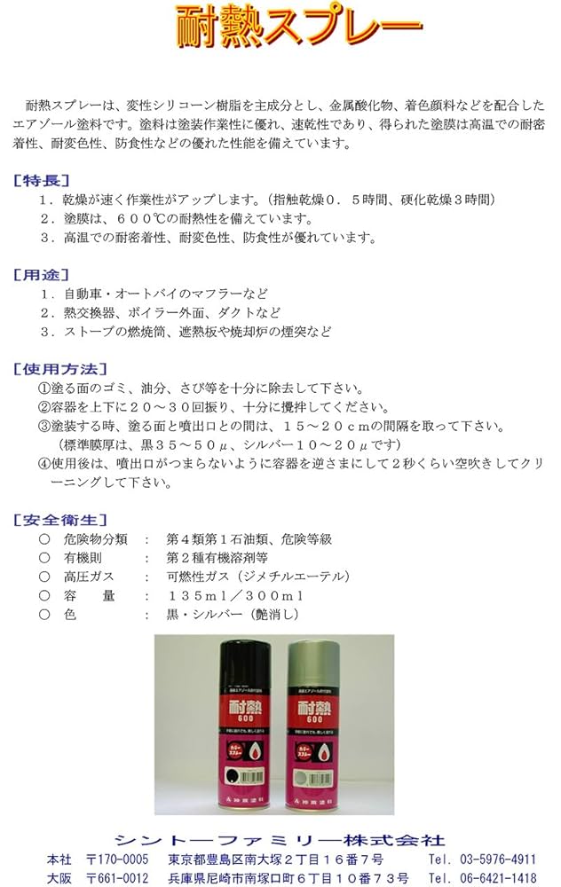 Amazonシントーファミリー 耐熱用 シルバー 300mlスプレー塗料。