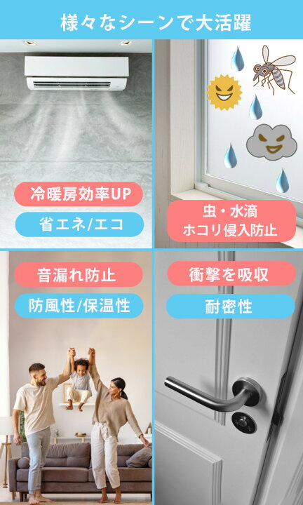楽天市場期間限定500円オフ隙間テープ 全3色 厚さ7mm×幅30mm×長さ10m2m×5本入すきまテープ 防音テープ 隙間風防止クッション テープ スキマテープ 防音 窓 防音テープ 隙間 埋め ドア 防音 防水 窓 玄関 室内 網戸 サッシ 防虫 すきま テープ すきま風。