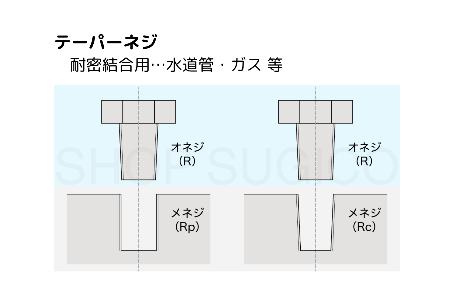 テーパねじと平行ねじの規格、RcやG、PTやPFの扱いやNPTとの違い。