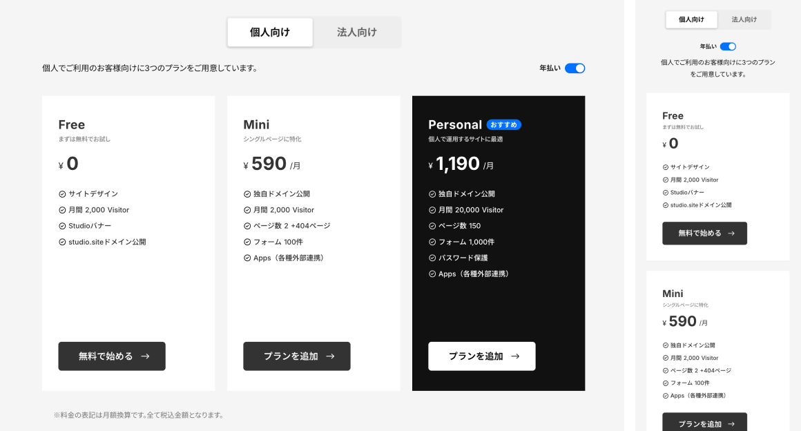 Studioの料金プランをわかりやすく解説!あなたにぴったりのプラン はどれ?初心者でも扱いやすいホームページ作成ツールStudioまいStudio専門・ホームページ制作coconalaブログ。