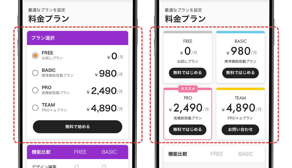 利用プラン選択画面 料金一覧画面 のUIをまとめてみたsKawashima's blog。